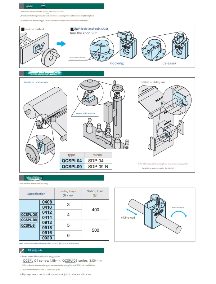 Przeciwdziałający samoczynnej transformacji mechanizm blokujący wału QCPL0410 0412 0912 0915 0916 0920 usługa cięcia stop serii 1000