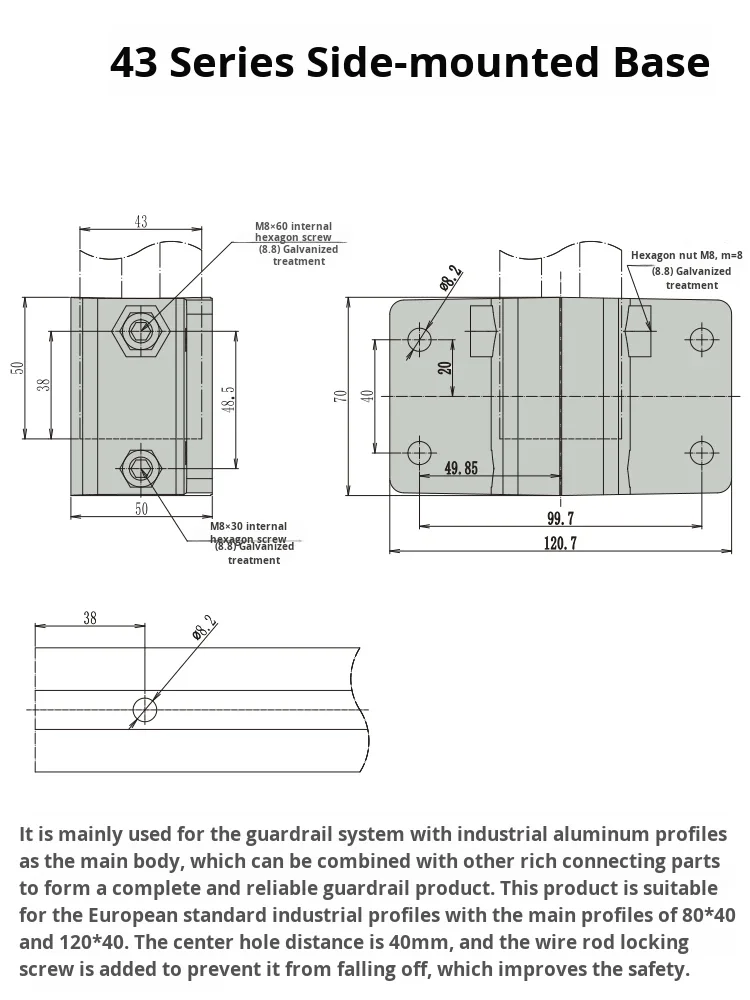 product 43mm series 1000 grade side mount base third generation wire rod aluminum alloy lean pipe connector accessories material car-20