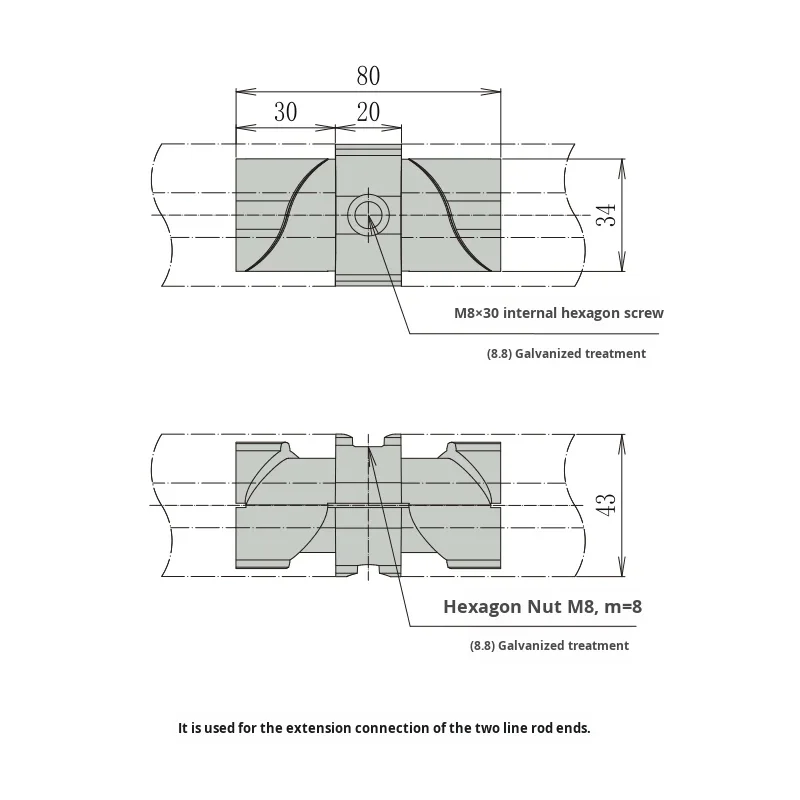 43mm Series Basic Line Rod Extension Connector Third Generation Aluminum Alloy Lean Tube Connector Profile Trolley Model