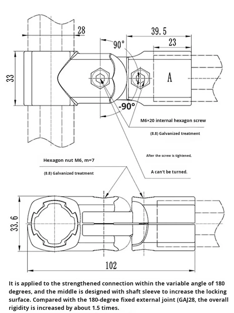 product external 180 degree d28 third generation line rod aluminum alloy 6000 series lean pipeline accessories profile connector for-29