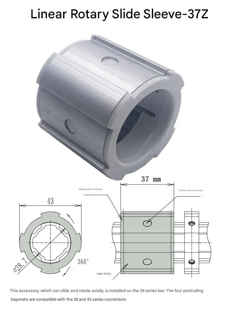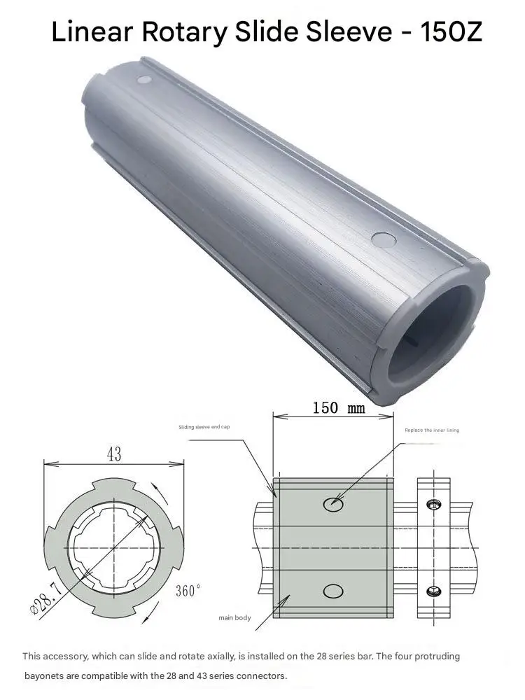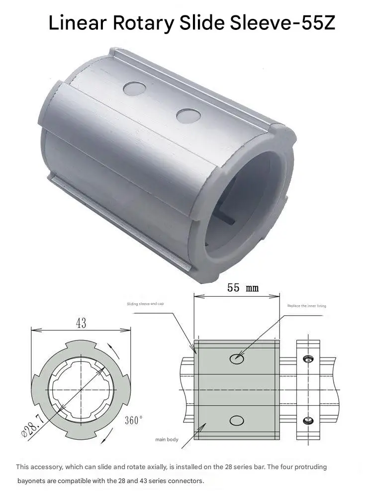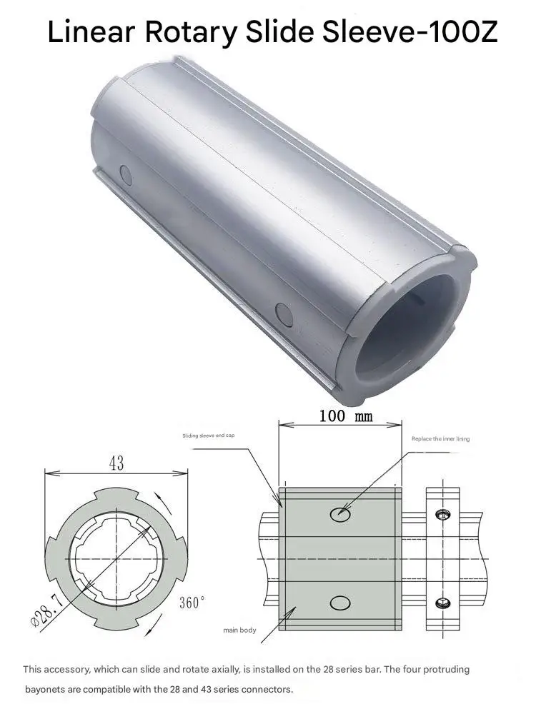 Linear Rotating Sliding Sleeve 28mm Third-generation Aluminum Alloy Lean Pipeline Rod Accessories Workbench Turnover Vehicle